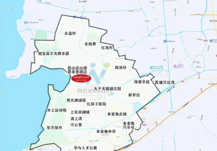 可以看到荷玛诗湾、淀山湖喜来登酒店等