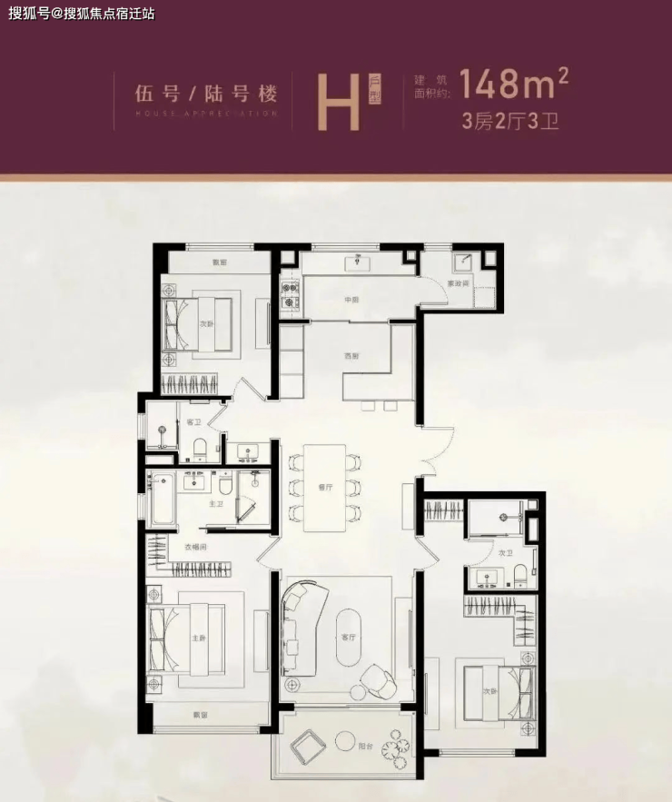 5号楼【02室】·6号楼【01室】户型对称一致,2梯2户,总高11层;
