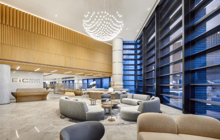 与此同时,EIC高比例采用可回收环保材料,远远超过先进绿色建筑标准。它以石材、陶土板、木饰装点空间,并搭配2.4米宽杭州罕见的四层双夹胶超白玻和自动开窗器,为办公提供更多新鲜空气、光线视野,大幅减少了碳排放和紫外线辐射。