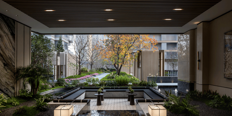 6栋「云雾·畅聊茶吧」 竹影摇曳,水声潺潺,融合自然光影,就像在奢华度假酒店,体验静谧的茶歇体验。
