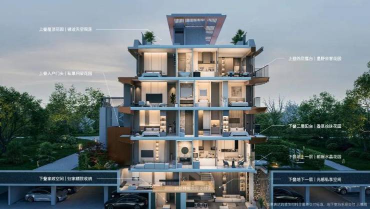 上下叠错层创新 · 地下空间的美学觉醒 · 客厅的院落化设计