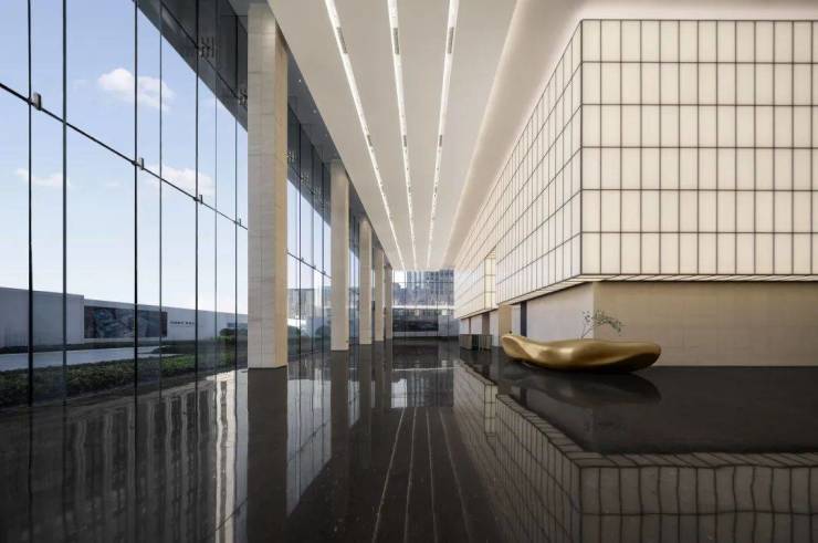 步入约13.5m挑高、约800㎡星光艺术大堂,透光玻璃墙面以南宋汝窑瓷韵为灵感,将自然光影与艺术美学交融,打造企业形象的“第一眼名片”。