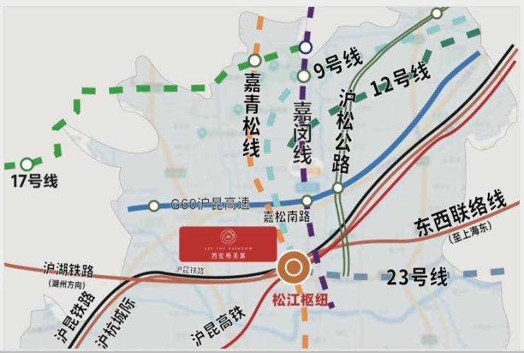 交通便捷:坐拥G60高速、高铁(松江南站)地铁(无缝对接9号线,规划嘉青松线、东西联络线等多条轨道交通)、有轨电车T1/T2线等立体交通。