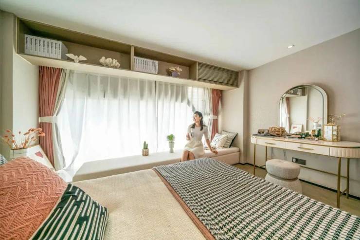 开间约4.2米,楼上楼下动静分离。楼下是厨房、卫生间和餐客厅。楼上放得下1.8米的大床,淋浴房更有1.6×0.85米。虽不算大房子,但也“有很大的落地窗户,只需百万起就能拥有。
