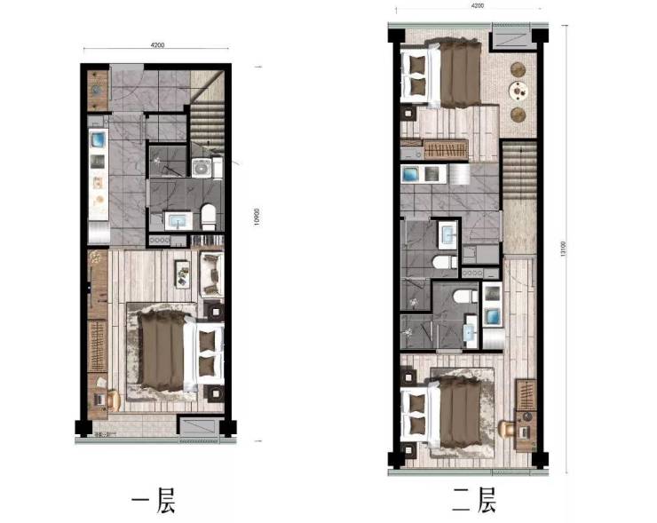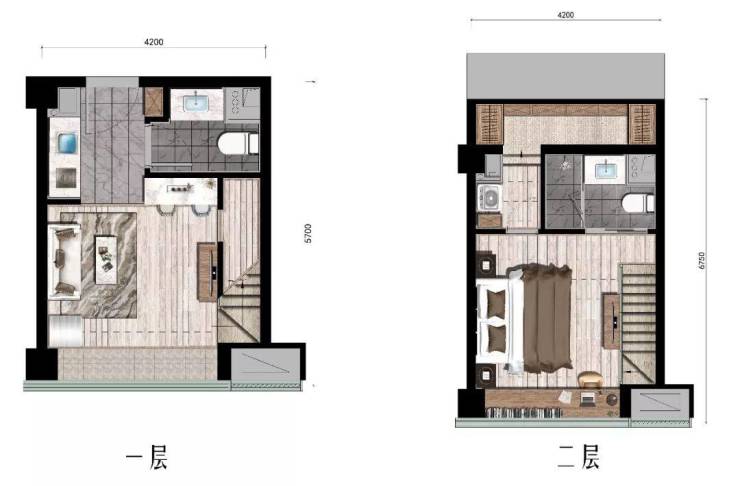 这两年杭州酒店式公寓中的LOFT产品就掀起了一股“双钥匙”风潮,就是将上下两层分割成独立的两个套房,各自配备独立的厅房厨卫。