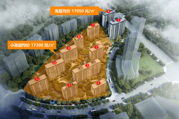 备案价格:小高层均价17300元/㎡,高层17050元/㎡
