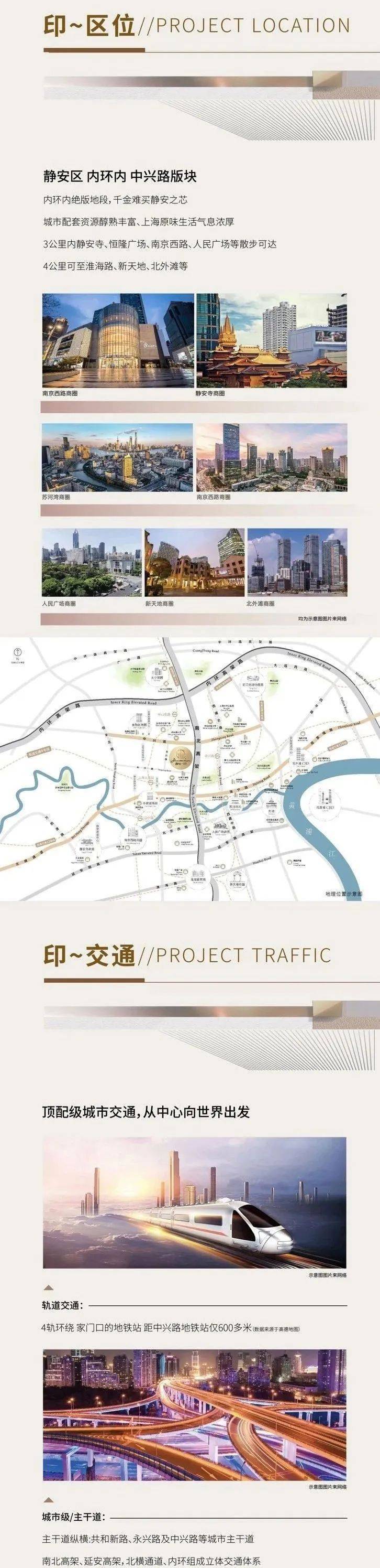 项目拥有无法复刻的城心地段:紧邻南北高架、北横通道两大城市黄金轴线,3KM内上海四大顶级商圈环绕。城市繁华天际线,百年人文和丰盈配套,咫尺抵达。