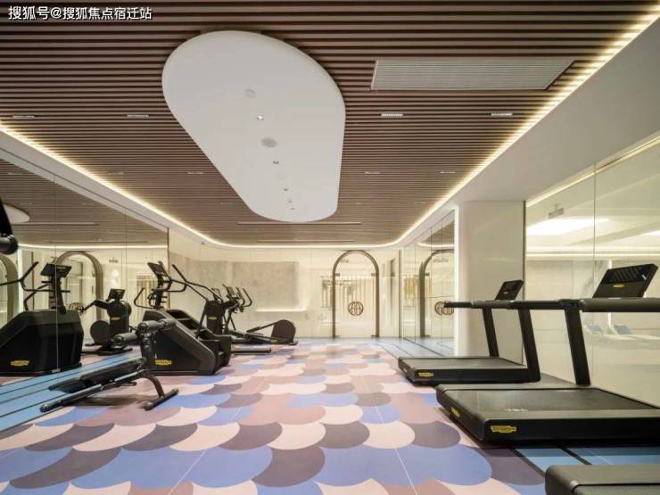 客厅外面,电动开启窗徐徐降下,实现了阳台的功能,这得值一辆特斯拉。隐藏式晾衣架和健身区,对着江景撸铁、跑步,这里要是不过瘾,楼下还有泳池健身会所,满足一家人多样的健身需求。