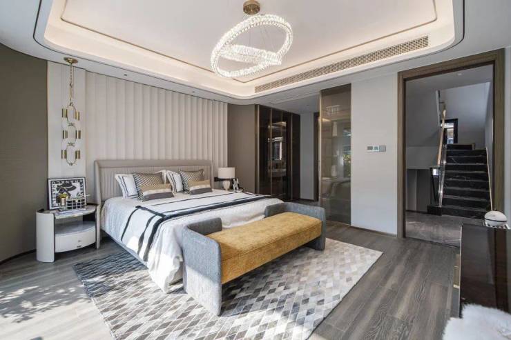畅想一下,转角沙发+大圆桌+西厨岛台加餐边柜,怎么布置都游刃有余,亲朋来访,好友相聚,丝毫不显拥挤。二楼以上规划为生活起居区,四套房设计大气磅礴,每个房间都拥有独立卫浴和衣帽间,即使三代同堂,也能互不影响,隐私性舒适性拉满。