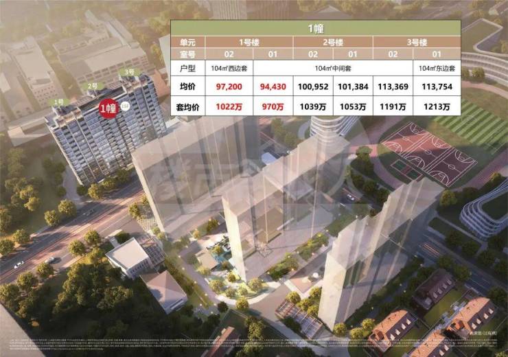1号楼01室中间套<02室边套,总价仅900万出头;而最右侧3号楼的同类房源,套均总价要高出近200万。