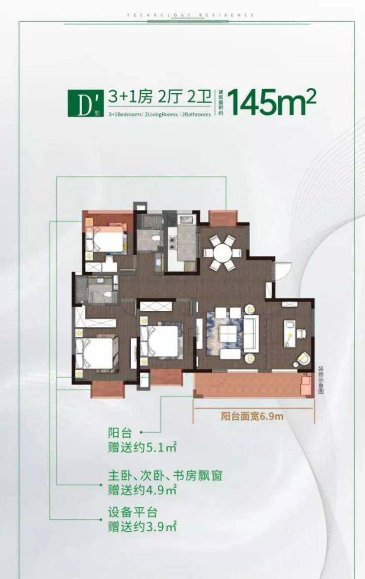 🍀 户型面积:117-121-130-144㎡