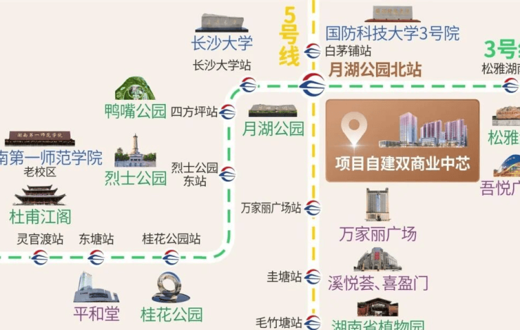 🏘配套🏘【全优配套资源,雍享万象生活】1⃣高效·交通🚇双地铁上盖与地铁3&5号线换乘站——月湖公园北站(纵横四方,且可直达五区一县站)无缝衔接,是长沙少有的双轨交汇正地铁上盖楼盘,业主无需绕行马路直通地铁口,生活时刻快人一步。