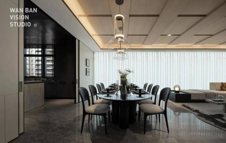 室内空间美学的营造,需要一个更大的公区。认真观察邱德光最新的作品,都有把公区越做越大的趋势。就像前湾·归源,整个公区面积足足有约122㎡,再加上约3.8米的层高,有着「海阔天空」的辽阔感。