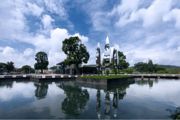 景观大道两旁主要种植大香樟和大桂花,主要活动场所和节点位置种植了胸径40cm以上大规格榉树、榆树等乔木,同时设计大面积的岛屿绿化,树木映衬,水波粼粼,形成层次丰富的景观效果。