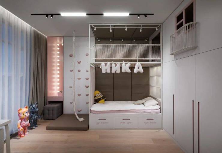 女儿房淡粉色装饰,为孩童勾勒出一片温柔灵动的童趣世界,营造出细腻而活泼的情绪氛围。