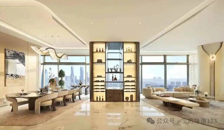 大平层:375㎡主力户型通过零公摊设计实现93%得房率(市场平均水平70-80%),赠送100㎡含40㎡露台,实际使用475㎡,南向24米采光面+270°环幕落地窗