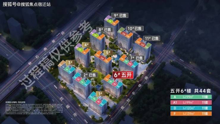面积:99㎡22套、120㎡11套、139㎡11套,共计44套。