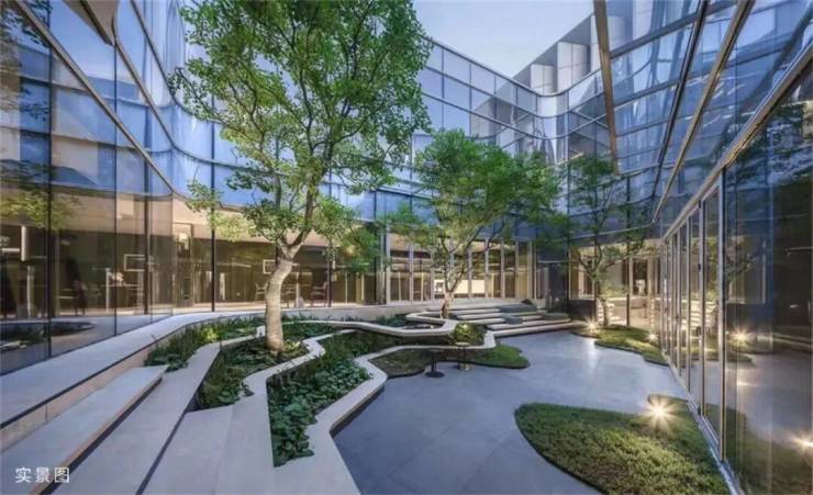 取意钱塘江流动韵意,平面上设计师用柔和的曲线巧妙地将形式与功能结合在一起,创造一个连续与无界的流动空间。除此之外,呼应建筑流动线型设计,巧用高差造景,融合美学与生态,带来有趣的步行体验,将自然以伟大交响曲的流动形式植入潮博。