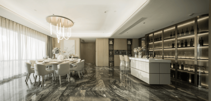 见到华鸿都会中心的精装交付材质,哪怕是阅房无数的鉴赏团,也不得不惊叹其中的奢华质感。甄选自全球的收藏级「雪山兰」背景墙、通铺的「威尼斯棕」天然石材地面以及「慕念白」天然大理石西厨台面……每一处的材质光彩,都投映出未来都会生活的质感与格调的日常。