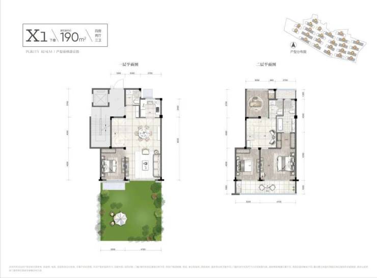 庭院跟露台,市面上200㎡上下的下叠,庭院普遍就四五十平,它有近70㎡;上叠顶层露台更大,约有80㎡,同类产品中遥遥领先。约190㎡下叠地下室,还带约5.6米挑高跟南北双采光井,隔成两层绰绰有余,实际可使用面积超100㎡。
