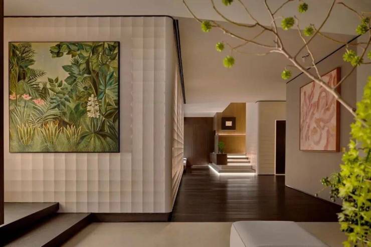 他借鉴度假酒店动线逻辑,将空间清晰划分为静区、动区及后勤区。维修人员可通过独立通道作业,不影响主人生活。同时,SPA、影院等功能互联互动,让主人在享受休闲配套之际,仍拥有充分的私密与宁静。