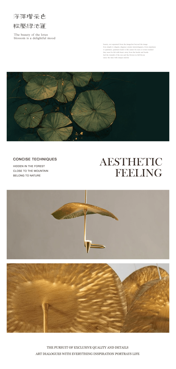 金屬燈罩經過手工錘打,呈現出自然漂亮的荷葉紋理。獨特的弧形散發柔和的光芒,增添一絲現代優雅氣息。