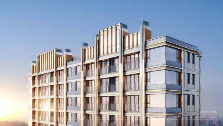 项目立面风格溯源外滩万国建筑群,武康大楼,石库门等经典造型,抽取建筑造型及经典几何纹样,用现代手法进行演绎。住宅采用新海派风格:高层住宅保留经典三段式比例:基座贝金米黄的温润肌理,塔身竖向金属几何线条的挺拔贵气,塔冠透光云石的浪漫柔和,搭配大面积的玻璃,打造光韵的建筑立面。多层洋房立面采用坡屋顶造型,转译经典石库门建筑当中阁楼老虎窗的元素符号,打造独特且具有上海文化内涵的江畔洋房。