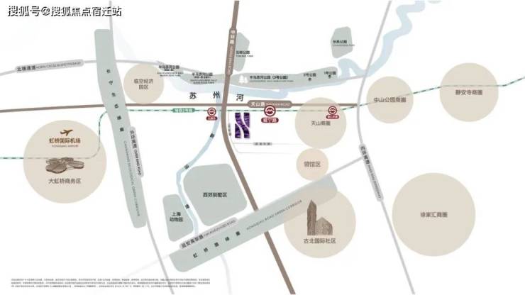 【地铁2号线】直线距离北新泾站约200m,威宁路站约800m,东向2站中山公园,4站静安寺,6站人广,9站陆家嘴,直抵浦东国际机场,西向3站虹桥2号航站楼,4站虹桥火车站,是上海名副其实的国际线。(*数据来源于百度地图测量及百度统计)