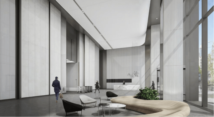 臻装双层挑高轩阔大堂,配备品牌电梯,营造高品质办公体验,为现代头部电商打造总部办公氛围,标榜企业实力。