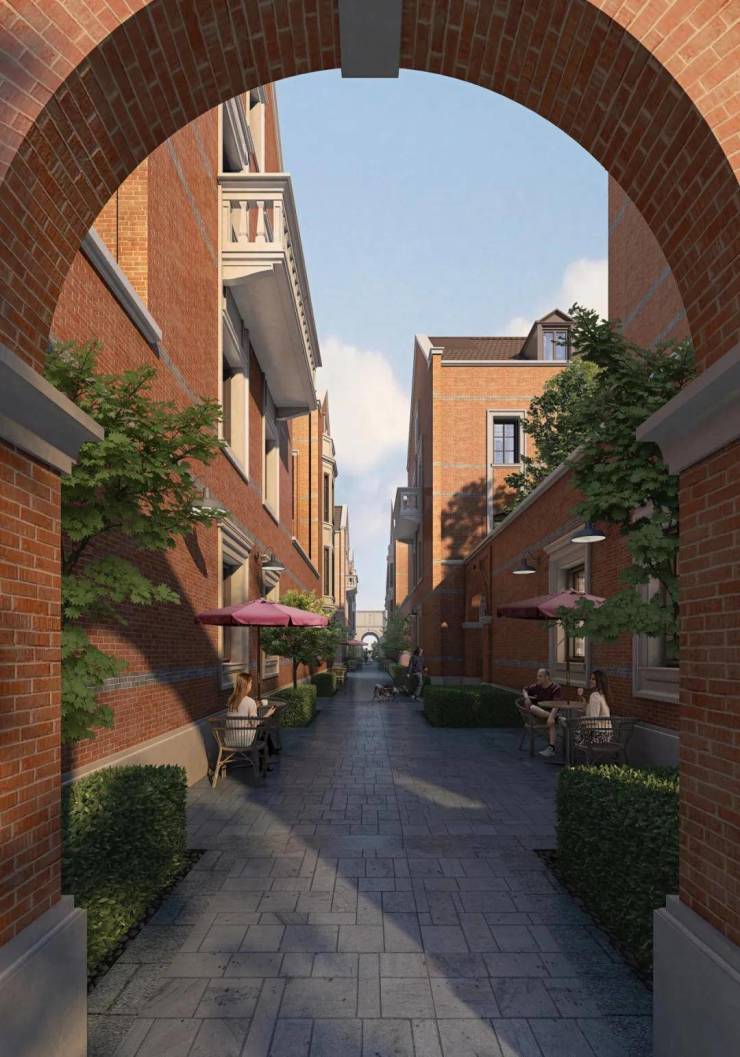 本着对城市历史的极致尊重,项目团队最终决定保留原生土地上的里弄格局:重现“风车状”的核芯巷道,并通过更多当代社区的动线排布,创造出项目内部的独特空间韵律。