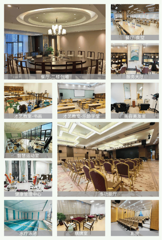 社区内配备健康管理中心、多功能厅、棋牌室、康复理疗区、手工坊、阅览区、餐厅、活动室等多元空间