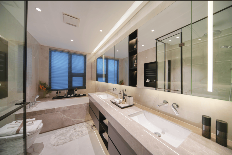 独立的大浴缸,宛如一方私密的放松天地,结束忙碌的工作,沉浸于温热的水中,疲惫瞬间烟消云散。