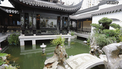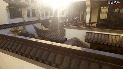 粉墙黛瓦,飞檐花窗,花街铺地,假山叠石……一走进西湖院子,浓浓的中式大宅韵味便扑面而来。优雅别致的观景亭,精致逸趣的美人靠,行走在西湖院子之中,仿佛穿越到了古代的江南,四处都弥漫着纯真而华贵的气息。