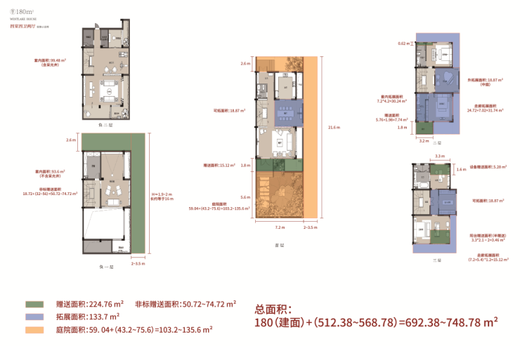 西湖院子180方院子,设计四室、两厅、四卫。