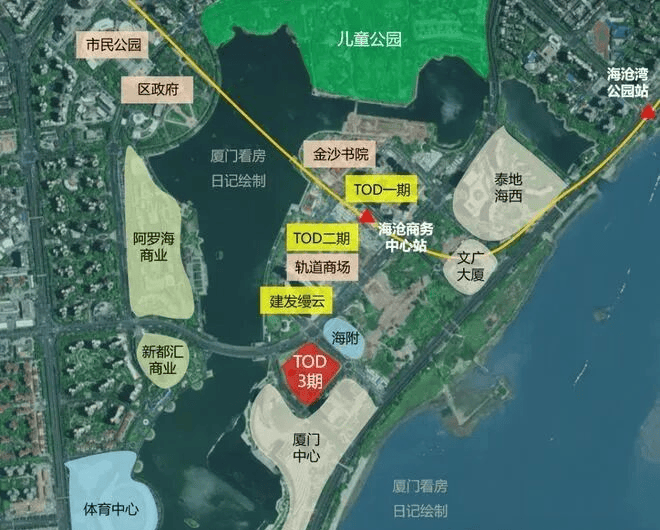 (2)城市生长轴心:板块汇聚泰地海西中心、厦门中心等商务地标,叠加文广集团大厦、金沙书院(海峡两岸文化地标)等公建配套,构建“政务+商务+文化”三位一体的城市功能极核。