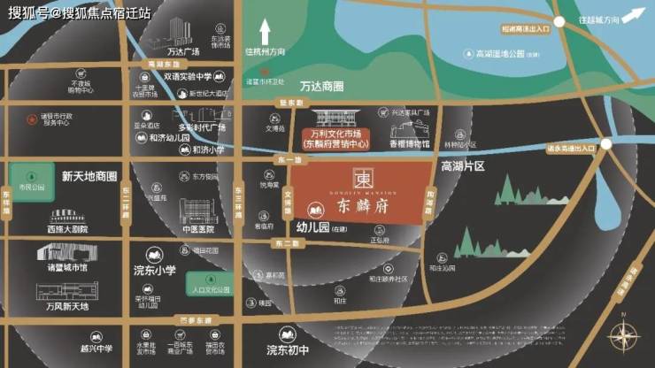 2大高能级大商业配套在侧,万风新天地购物中心(目前诸暨最大的城市综合体,距离项目仅约2km)、诸暨万达广场(距离项目约1.2km),万千繁华,举步即享。