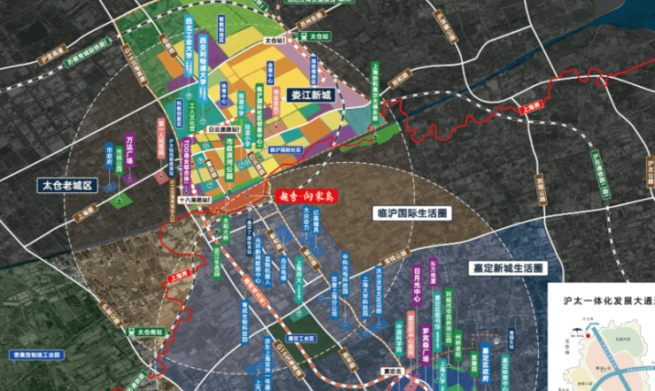 越秀向东岛位于太仓市娄江新城板块,作为以融沪发展桥头堡之姿,对标上海的繁华新城,从地铁来讲,从上海闵行区经过虹桥枢纽区,经过嘉定区,延伸至太仓。嘉闵线全段都在娄江新城板块,配套齐全,交通便利。