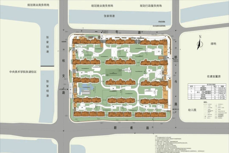 根据规划来看:项目拟建造17幢9-10F的住宅(洋房),层高约为34米。内部人车分流,车辆的主要出入口设置在北侧道路,人行出入口则主要设置在杜文路上。