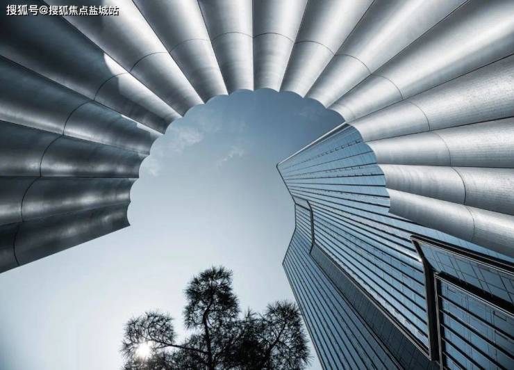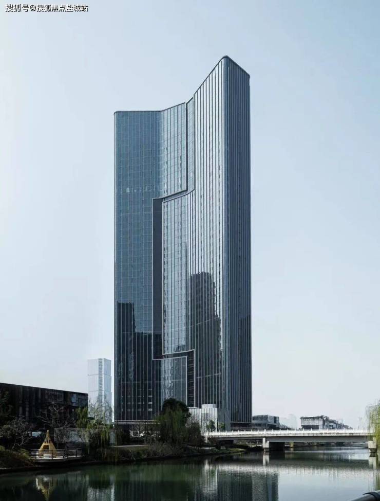 约200米的塔楼建筑,由Aedas主笔设计,挺拔洗练如山峰,清透的玻璃幕墙几乎融于湛蓝天幕中;垂直向下的线条,则恍若一波三折的叠瀑,在“山体”与“岩石”间碰撞,再飞流直下。