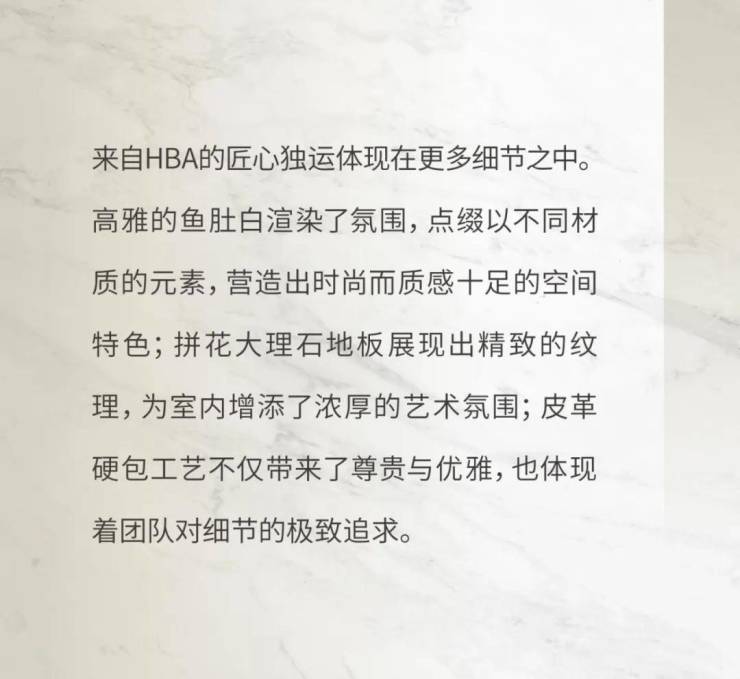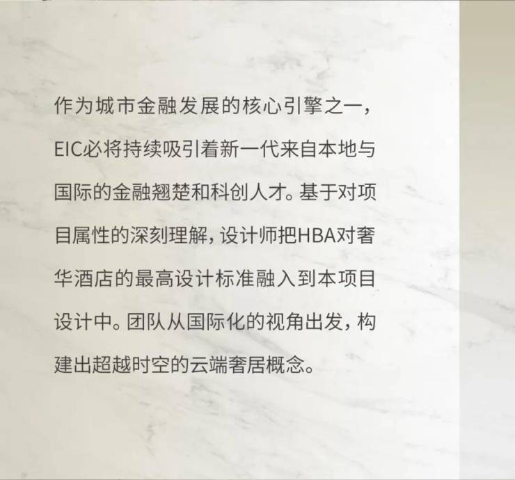 标的璀璨象征。在这宏大的篇章中,HBA以卓越的设计实力和独特的审美视角,荣幸担纲E户型大平层样板房的设计定调与打造。我们联袂诸如顶级建筑设计事务所Foster+Partners等众多顶尖设计力量,共同谱写这一建筑地标典范的华彩乐章,呈现一场前所未有的视觉盛宴。