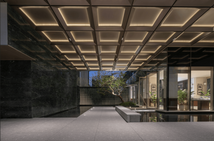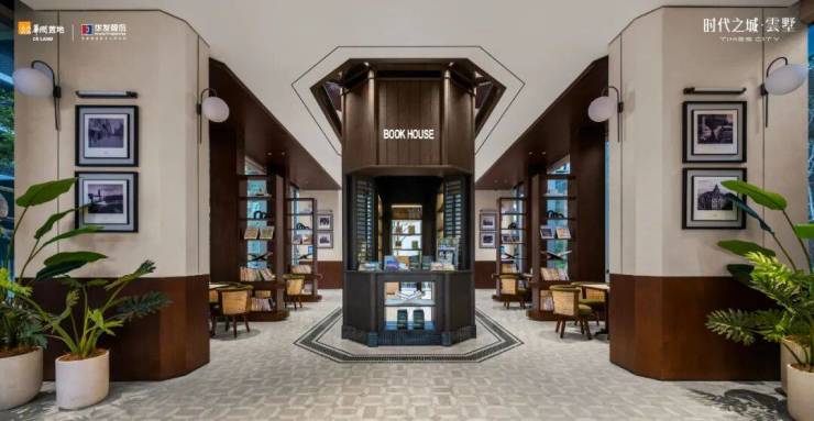 约200平左右的归家大堂做了书吧、落客区、咖啡吧,颇有现代摩登风格的感觉。
