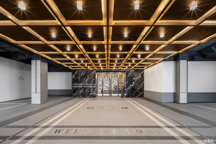 此外架空层还有很多细节,比如整体的挑高整整有5.2m,妥妥的豪宅级别配置;地面拼花都是纯手工拼接,摩登现代,打造出移步异景的归家仪式感。在600万级的项目中,真真实实属于超配!