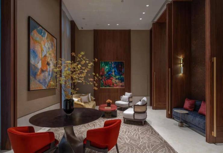 整体而言,接待区可以视作天潼198生活方式的先行落地区,停留于此,品饮咖啡红酒,对谈人生况味,在轻松愉悦的氛围中,想象未来生活的更多可能。