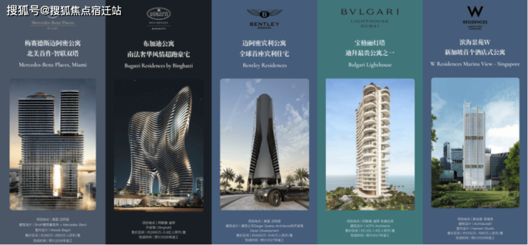 梅赛德斯迈阿密公寓、迪拜布加迪公寓、迈阿密宾利公寓、迪拜阿玛尼公寓、Maison Margiela公寓、宝格丽灯塔公寓、新加坡W公寓……