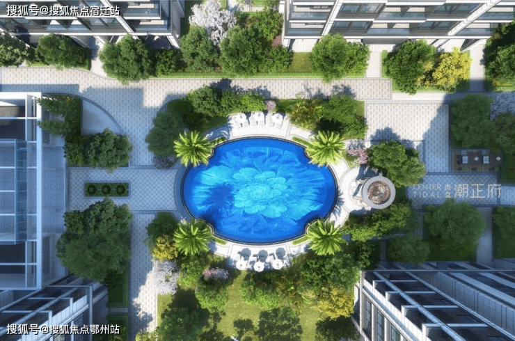 园区正中,是壹品同款的蓝宝石景观水景,占地超过约300㎡。杰立还不惜血本配置了加纳利海枣树。
