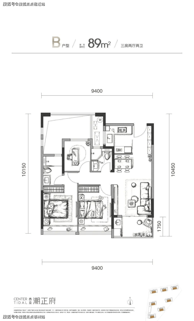 杰立·潮正府建面约89㎡户型图杭州上城杰立潮正府售楼处电话:400-000-5503转接9999【售楼中心】