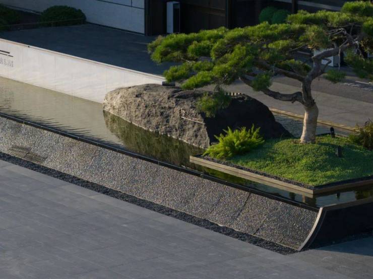 门堂前一眼看到重金打造的“松石望府”,精选极具中式韵味造型的名贵黑松搭配远赴千里寻觅而来的黑山石相得益彰,一松一石,一静一动,相映成趣,伴随着叠水的潺潺声……这精心设计的入口,不仅是一处景致,更是心灵的迎接仪式。