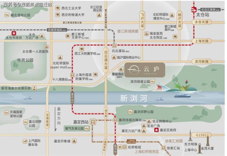 🔹🔸全维交通 | 5+1轨道交通网络,距太仓站约5km,距沈海高速入口约3.5km,距嘉闵线白云渡站1km