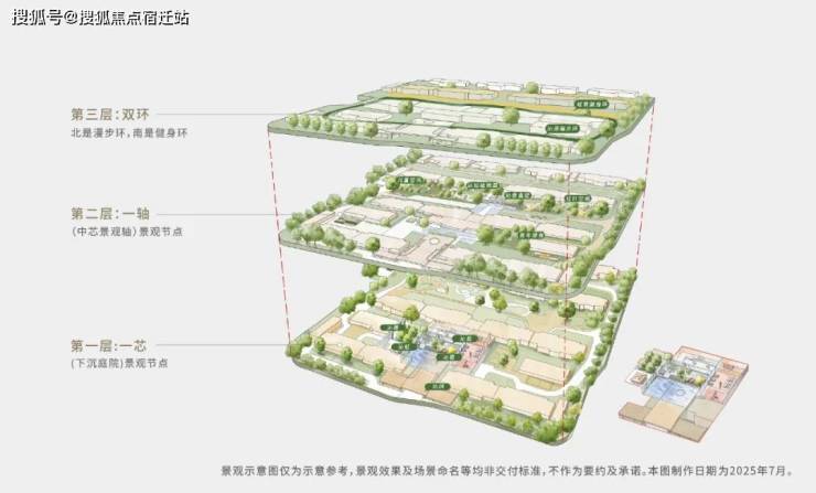 “立体景观芯”,下沉庭院复合型功能空间,非平面铺陈,目之所及皆是立体画境。