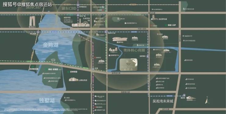 三轨穿插并行,5、6、8号线直达苏州各大核心区,金鸡湖大道、中环东线、现代大道、独墅湖大道等城市主干道汇聚在侧。
